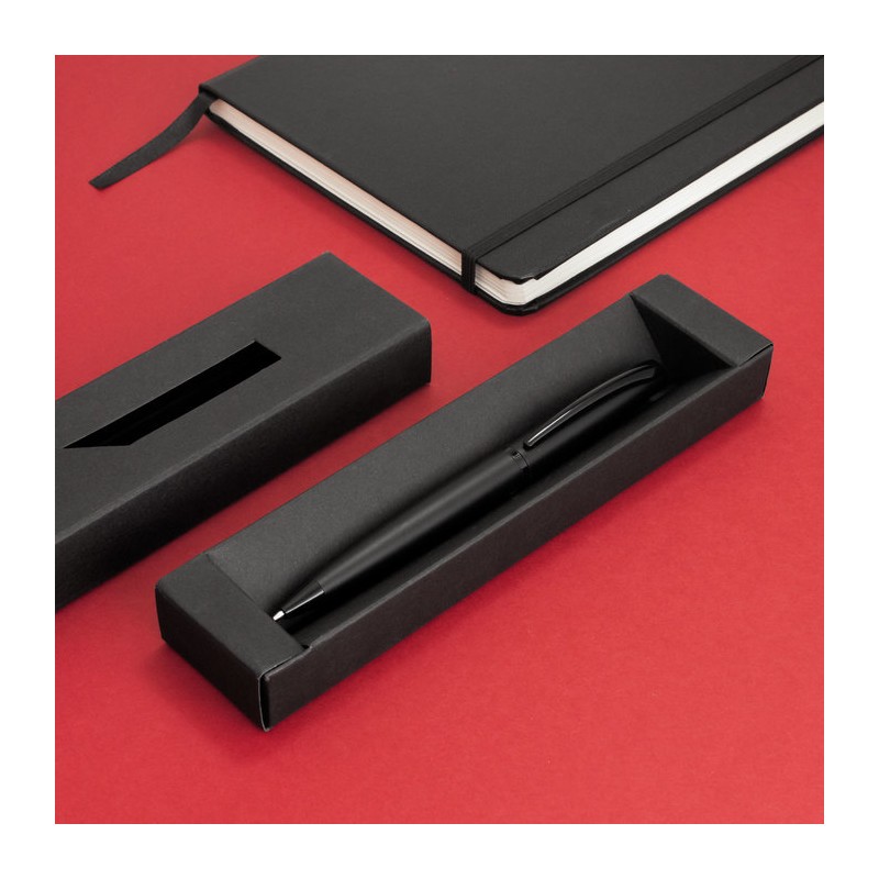 Detalles: Bolígrafo con apertura giratoria. Cuerpo de aluminio con acabado mate. Clip, anillo central y puntera de hierro con acabado brillante. Refill metálico de origen alemán. Tambor superior con revestimiento galvánico.